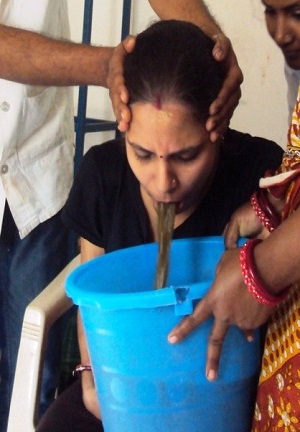 It is the procedure where patient takes vaman dravya (medicines that helps for emesis). By administration of this dravya patient vomits all the impurities combined with Katha Disha.
